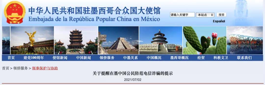 早在今年七月份,中国驻墨西哥大使馆也发布了相关电信诈骗提示。