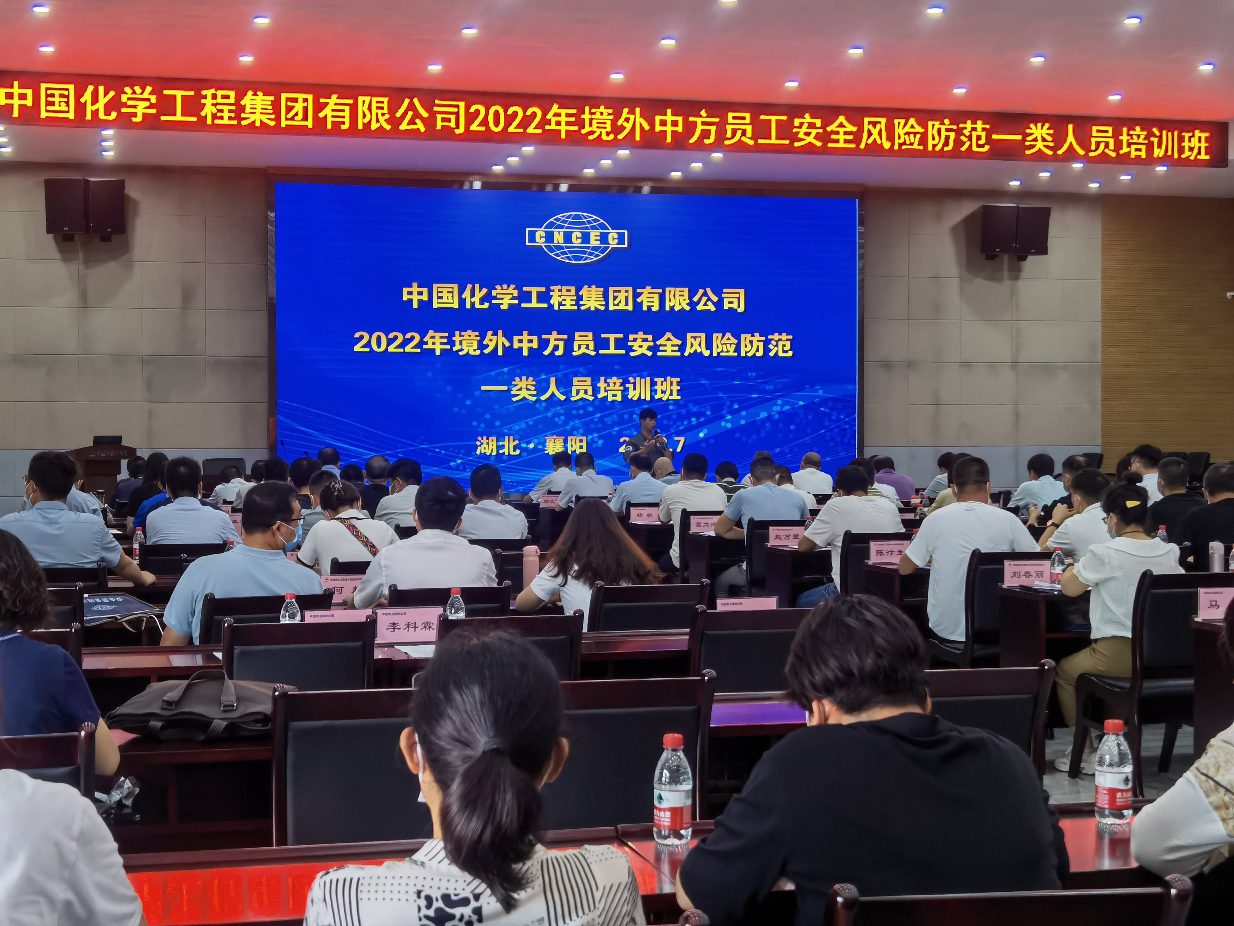 2022年7月,中国化学工程集团有限公司2022年境外中方员工安全风险防范一类人员培训班在湖北襄阳正式开班。本次培训共计安全类课程12门,涉及风险防范、安全意识的培养、保险及救援、安全基本技能、恐怖事件的应对、出行安全、应急预案及安保体系的建设等20余课时的课程。此次参训人员共计110余人,均为来自中国化学二十家企业的中层及管理者。
